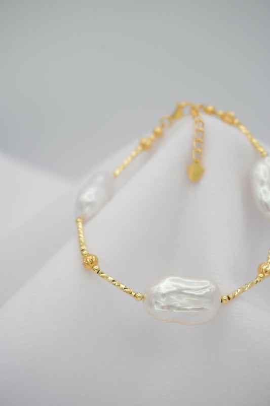 Star Baroque Pearl Bead Chain Pendant Bracelet
